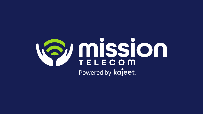 This co-branded logo is used for initiatives delivered by Mission Telecom through Kajeet as its agent, with both brands shown clearly and consistently.